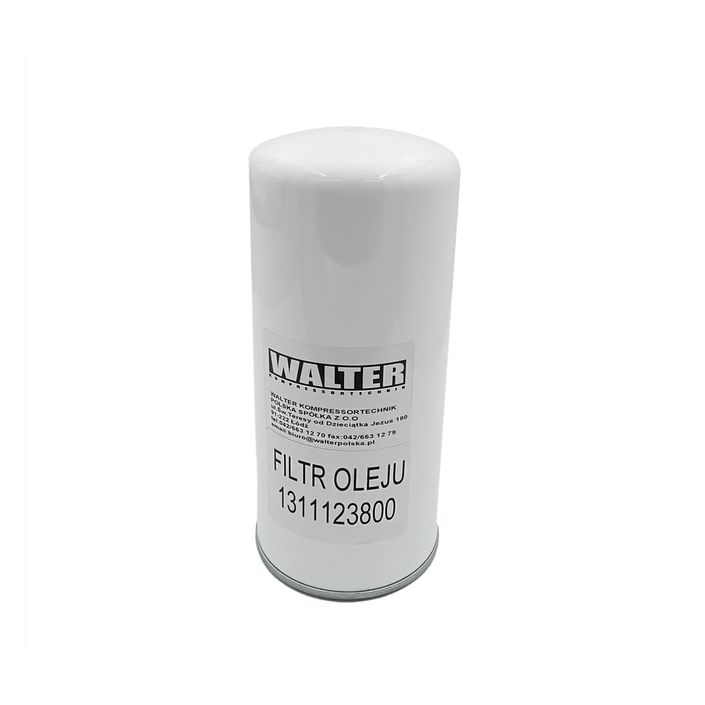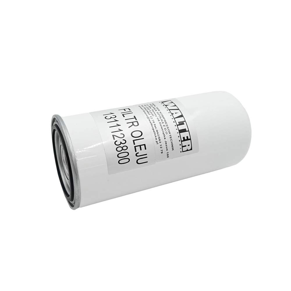 Filtr oleju znajduje się na początku obiegu smarującego i zapobiega dostawaniu się zanieczyszczeń na powierzchnie robocze rotorów bloku śrubowego i łożysk.